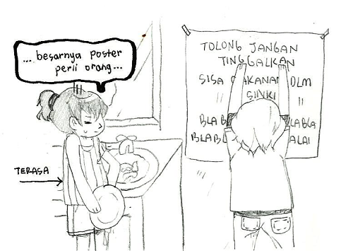 erhh, ni tak bertanggungjawab gila. basuh pinggan mangkuk, sisa makanan biar je dalam sinki. nanti busuk, geli. aku dah tulis peringatan atas kertas besar gila pun tak jalan. aku bukan apa, aku kesian dekat mak cik cleaner yang kena bersihkan nanti. lagi, aku nak berus gigi dekat mana. bau tak payah cakap la. serius, golongan ni memang tak bertanggungjawab dan bertimbang rasa.