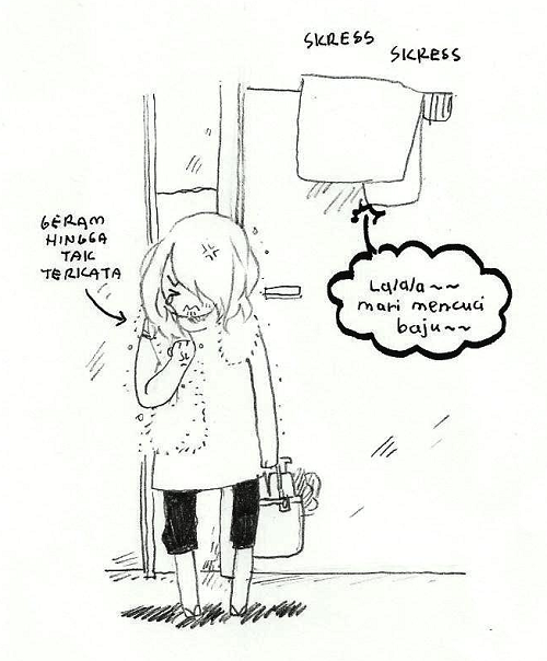 aku tak kisah sangat kalau ada budak main cop2 shower room tapi lambat masuk. aku still boleh ambik masa tu untuk menyelit sekejap mandi. tapi aku cukup pantang kalau ada orang membasuh dalam shower room. bilik mencuci kan ada. bilik tu memang dibina khusus untuk para pelajar membasuh pakaian. ni tak, menyusahkan orang lain yang nak mandi dengan menunggu lama. kadang2 aku dah la lewat nak pergi kelas, makan, dating (ehem). sangat geram. grr. owh, aku geram jugak dengan orang yang dah siap mandi, tapi take time gila nak pakai baju. arhh. kita kena bergerak pantasssss